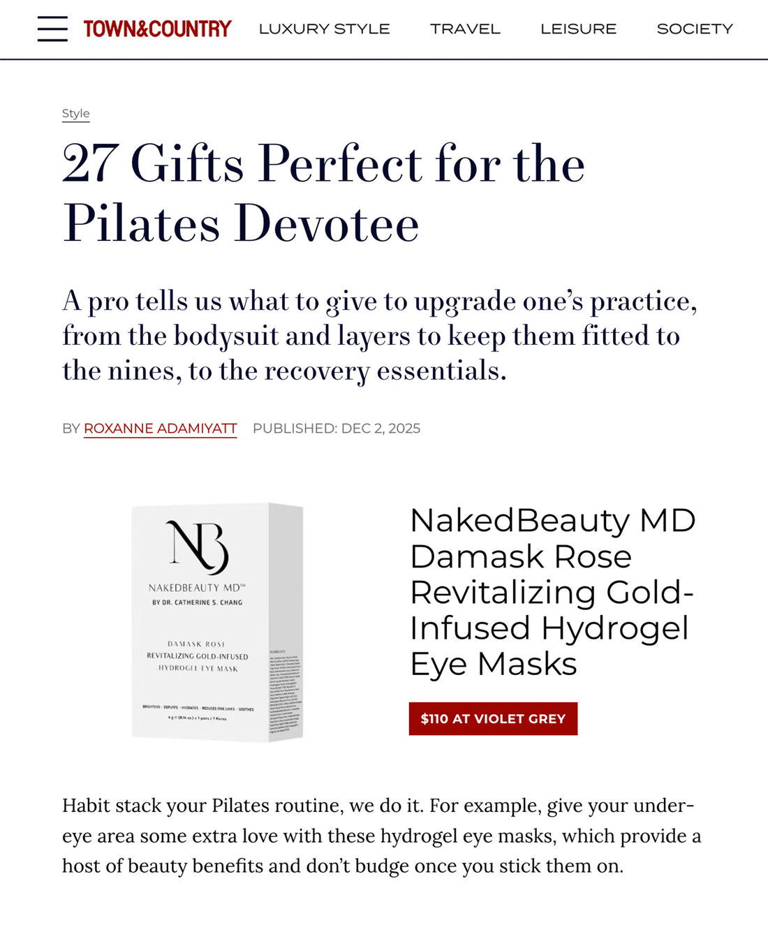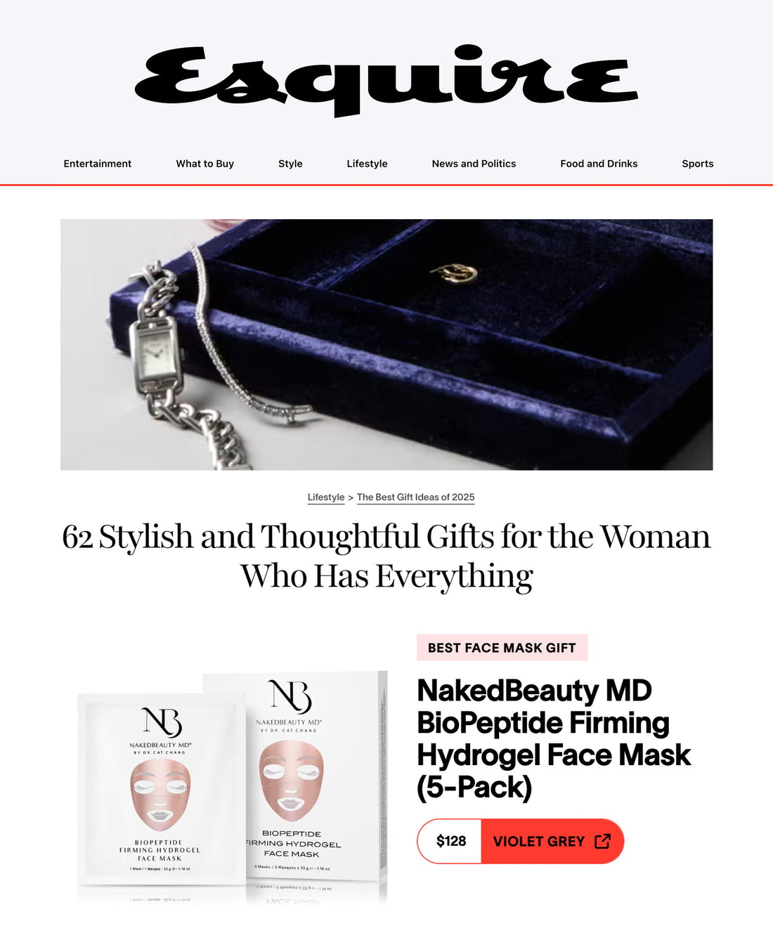 Travel + Leisure highlighted NakedBeauty MD's Damask Rose Revitalizing Gold-Infused Hydrogel Eye Masks within a roundup titled, "The 53 Best Gifts for Women in 2024."
